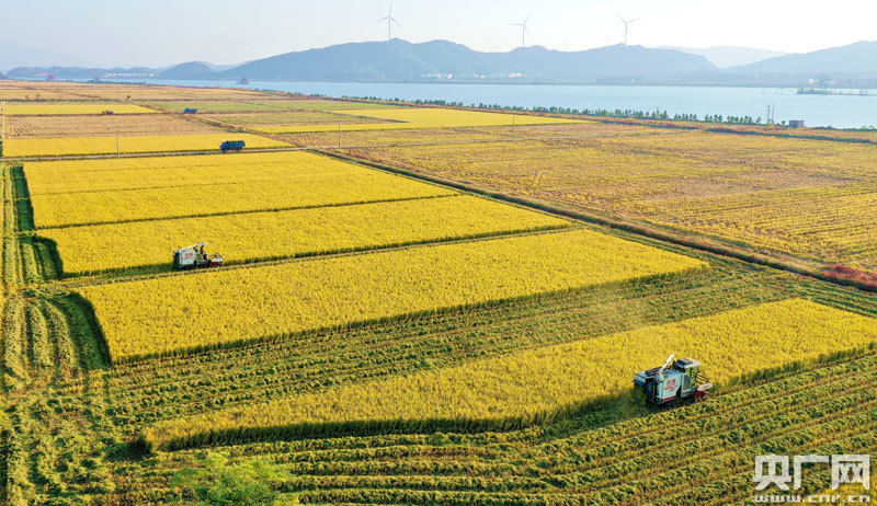 村民正搶抓農(nóng)時(shí)收割晚稻,確保顆粒歸倉(cāng)(央廣網(wǎng)發(fā) 通訊員攝)