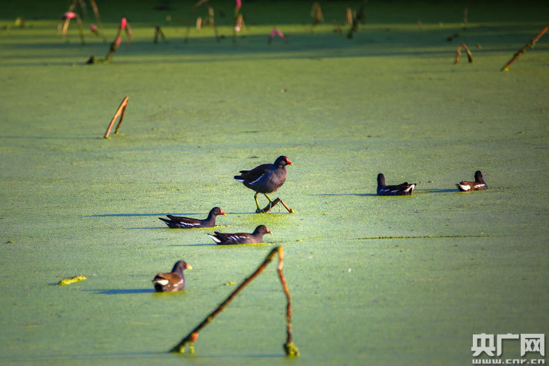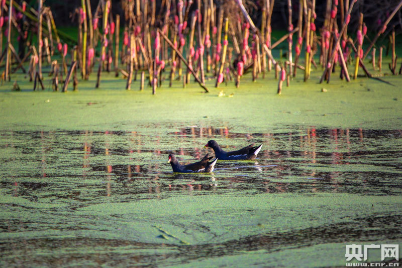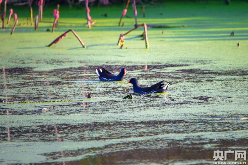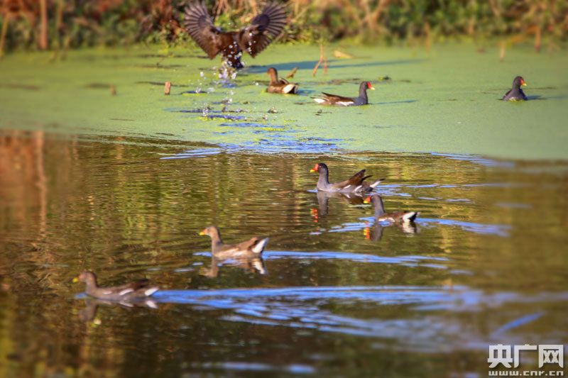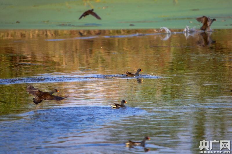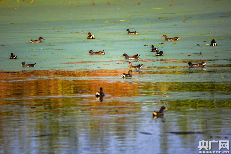 近百只野生水鳥,在這里覓食、嬉戲(央廣網(wǎng)發(fā) 通訊員攝)