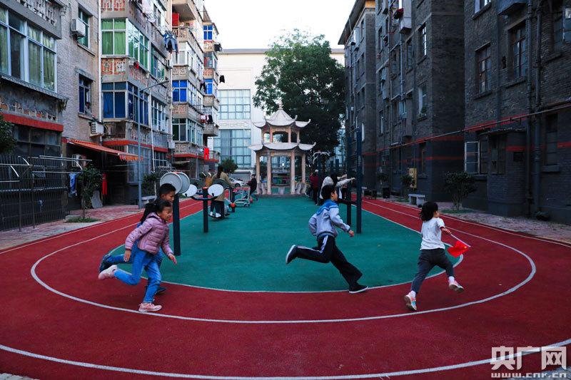 在吉州區(qū)塔水橋社區(qū)有線電廠小區(qū),居民正在改造好的跑道上休閑運動(央廣網(wǎng)發(fā) 通訊員李軍 攝)