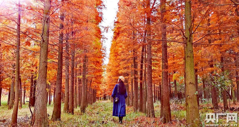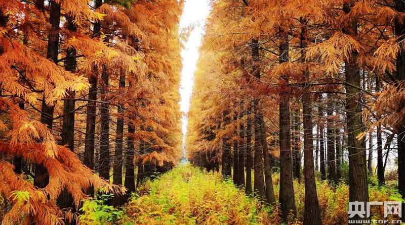 每年秋末冬初,翠綠的水杉樹葉開始變黃轉(zhuǎn)紅。一片片水杉林,漸次紅成了油畫,成了塔橋一道靚麗的風景線。