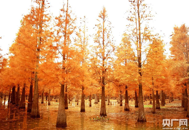 央廣網(wǎng)貴溪12月14日消息(記者鄧玉玲 通訊員胡菊妹 易。┤攵詠恚髻F溪市塔橋白鶴湖附近,萬棵水杉樹,匯織成一幅流光溢彩的“油畫”,熱烈的金黃,濃郁的暗紅,正處于最佳觀賞期,吸引眾多游客前去觀賞。
