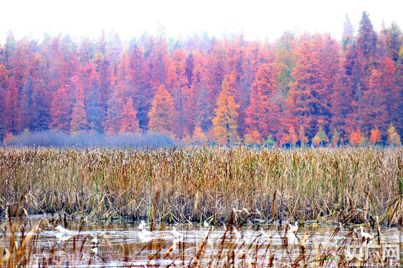 白鷺與水杉構(gòu)成一幅美景(央廣網(wǎng)發(fā) 通訊員供圖)