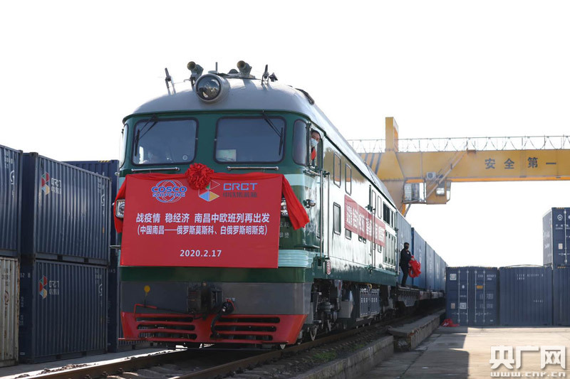 央廣網(wǎng)南昌2月17日消息(記者胡嘯 通訊員石閩 周娜)2月17日9時58分,滿載著41車40英尺集裝箱的中歐班列,由南昌(向塘)國際陸港橫崗站發(fā)出駛往俄羅斯莫斯科和白俄羅斯明斯克。