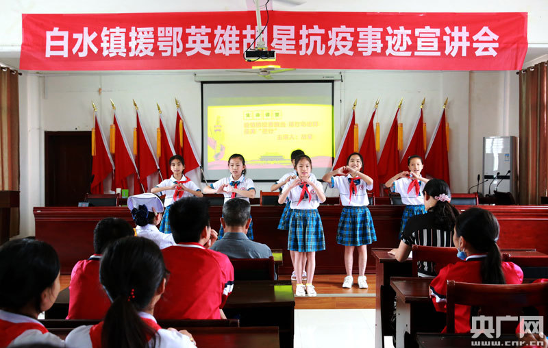 胡星在為白水鎮(zhèn)的中小學生講敘自己親身經歷的武漢抗疫故事