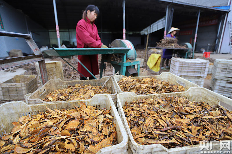對(duì)中藥材虎杖進(jìn)行初加工(央廣網(wǎng)發(fā) 通訊員劉麗強(qiáng) 攝)
