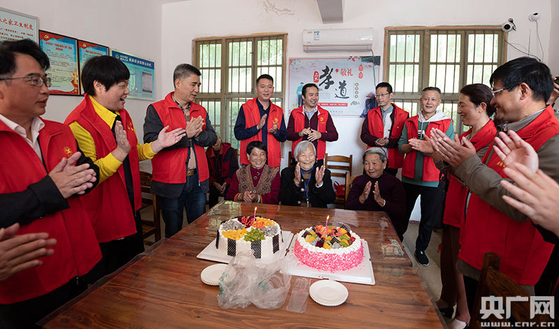 愛心志愿者為河下鎮(zhèn)垱頭村頤養(yǎng)之家三名老人集體慶祝生日(央廣網(wǎng)發(fā) 通訊員趙春亮 攝)