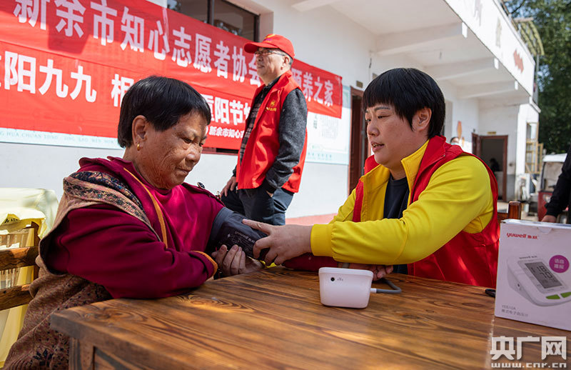 愛心志愿者為河下鎮(zhèn)垱頭村頤養(yǎng)之家老人測(cè)量血壓(央廣網(wǎng)發(fā) 通訊員趙春亮 攝)