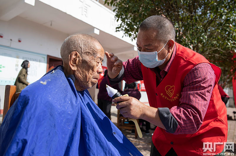 愛心志愿者為河下鎮(zhèn)垱頭村頤養(yǎng)之家老人理發(fā)(央廣網(wǎng)發(fā) 通訊員趙春亮 攝)