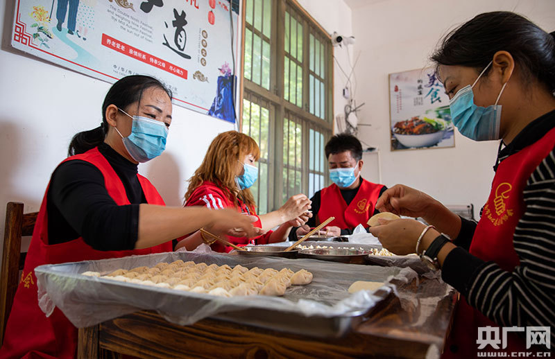 愛心志愿者在河下鎮(zhèn)垱頭村頤養(yǎng)之家為老人包餃子,喜迎重陽(yáng)節(jié)的到來(lái)(央廣網(wǎng)發(fā) 通訊員趙春亮 攝)