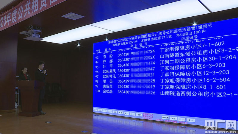 央廣網(wǎng)彭澤10月26日消息(記者王一凡 通訊員付洪 袁昕)10月25日,彭澤縣2020年度公共租賃住房實物配租公開搖號儀式在該縣行政中心舉行,1814戶符合公共租賃住房保障條件的中低收入家庭通過現(xiàn)場搖號與網(wǎng)絡(luò)直播搖號等方式參與了此次搖號活動。