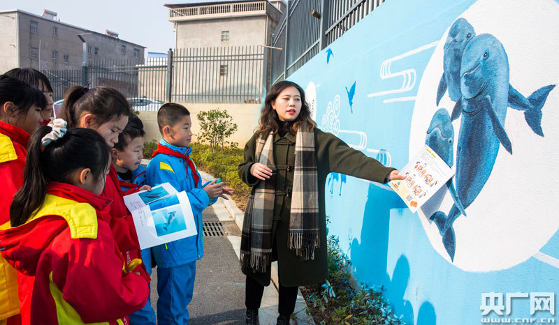 江豚保護(hù)志愿者為學(xué)生科普江豚知識(shí)(央廣網(wǎng)發(fā) 通訊員傅建斌 攝)