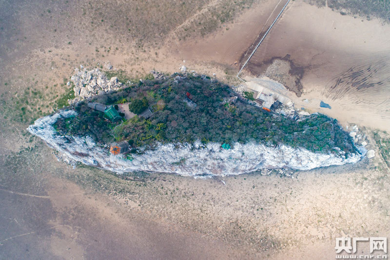 鞋山島東面被候鳥糞便覆蓋 宛如“雪山”