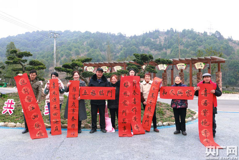 高枧村民展示自己拿到的春聯(lián)(央廣網(wǎng)發(fā) 通訊員王春燕 攝)