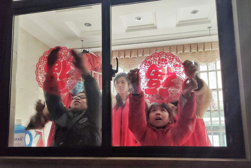 “陳老,我們來陪您過小年了!”聽到敲門聲,76歲的陳柒根趕緊將大家迎了進來。工會“娘家人”來了,志愿者“娘家人”來了,社區(qū)“娘家人”也來了。大家?guī)е、油、紅圍巾、春聯(lián)、防疫物資等年貨來到了陳老家中。貼窗花、貼春聯(lián)、端上年夜飯……頓時,老人家中熱鬧了起來,充滿新春的喜慶味。