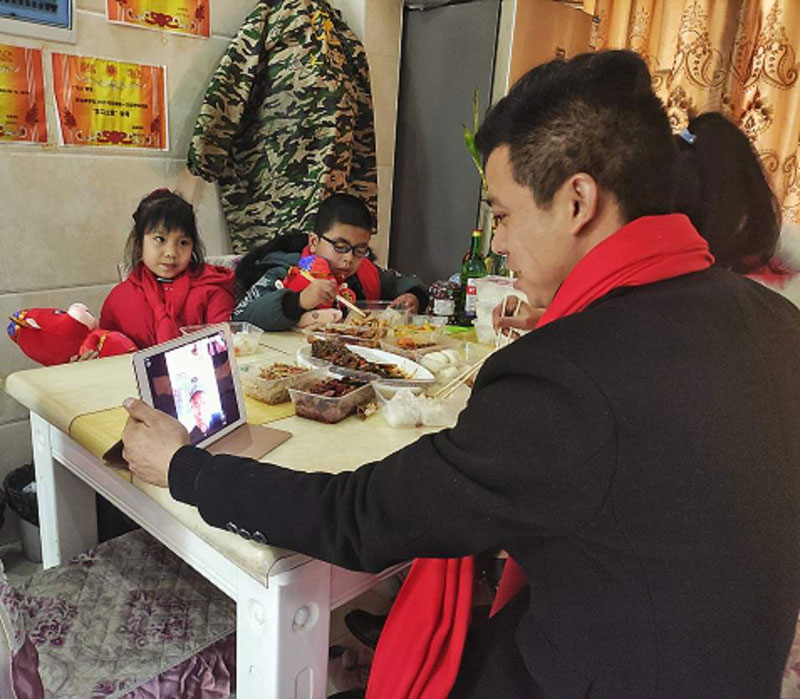 由于二老不會使用智能手機,年夜飯后,龍洲社區(qū)黨支部書記、主任簡小紅像往常一樣,通過視頻連線老人遠在北京的大兒子,讓兩端的親人在線上“團聚”,聊聊貼心話。