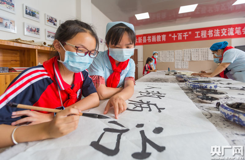 學生正在創(chuàng)作書法作品(央廣網發(fā) 通訊員 攝)