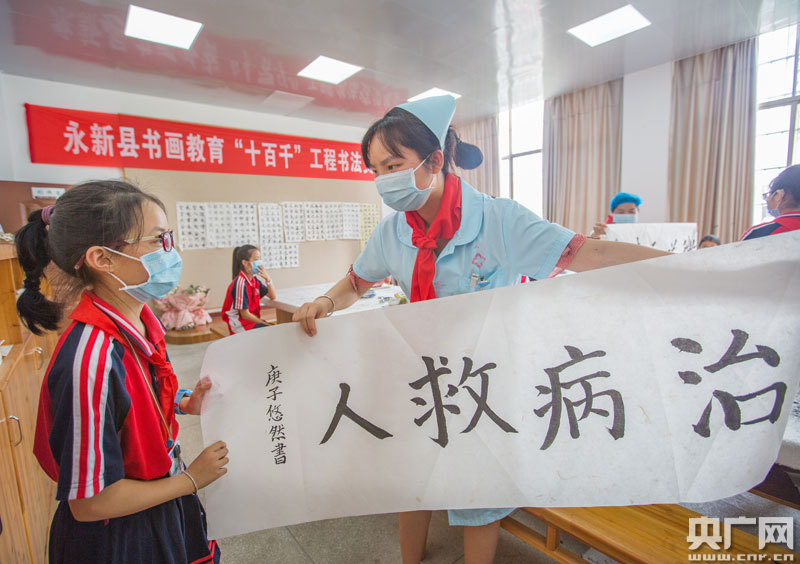 學生贈送書法作品給白衣天使(央廣網發(fā) 通訊員 攝)