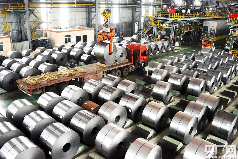 江西中冶南方冷軋新材料公司的員工在車間吊裝冷軋鋼卷(央廣網(wǎng)發(fā) 通訊員提供)