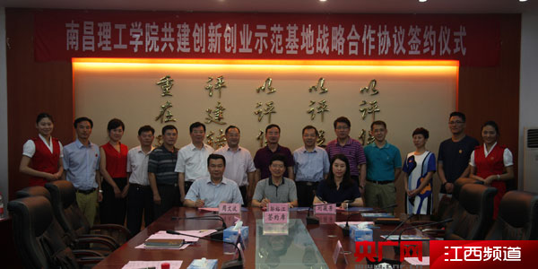 南昌理工學院,南昌國家高新區(qū)管委會,江西省青年眾創(chuàng)創(chuàng)業(yè)服務有限公司簽定共建“南昌理工學院創(chuàng)新創(chuàng)業(yè)基地”戰(zhàn)略合作協(xié)議書。