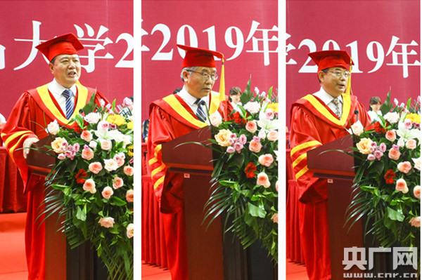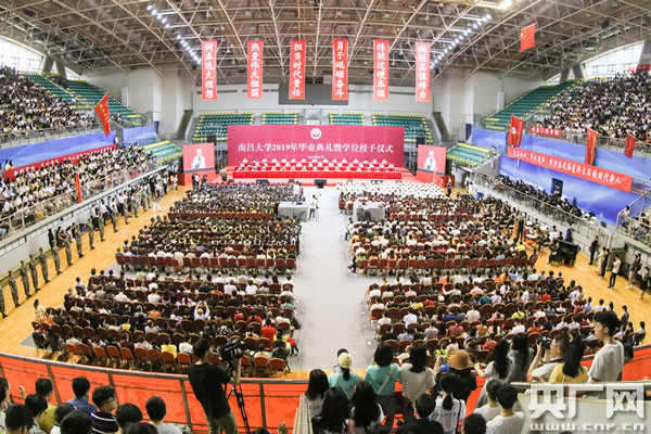 央廣網(wǎng)南昌6月20日消息(記者王一凡 通訊員許航)滿載著豐收的喜悅,滿含著送別的深情。6月19日上午,南昌大學(xué)2019屆畢業(yè)典禮暨學(xué)位授予儀式在莊嚴(yán)的國歌聲中拉開帷幕。學(xué)校師生、家長、校友齊聚室內(nèi)體育館,溫情送別11000余名2019屆畢業(yè)生。