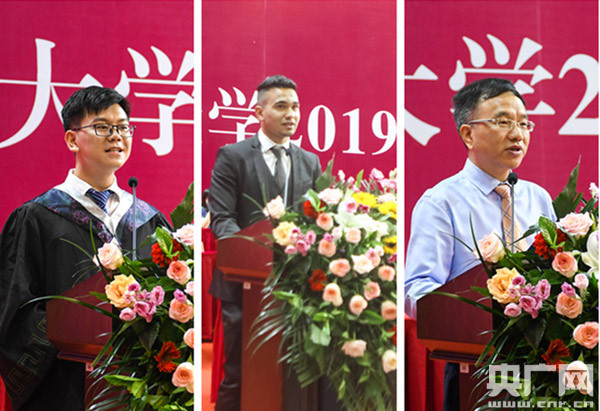 “我要讓身邊的人都知道,在遙遠(yuǎn)的中國,有一個英雄城,在英雄城里有一個前湖,那里有我最愛的南昌大學(xué)。我會把我在南昌大學(xué)學(xué)到的本領(lǐng)貢獻(xiàn)給我的國家。”來自約旦的留學(xué)生畢業(yè)代表王德用漢語表達(dá)感恩之情。