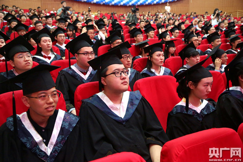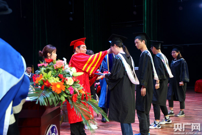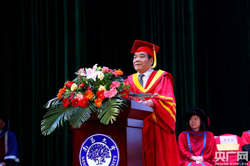 南昌大學(xué)校長周創(chuàng)兵正在為畢業(yè)生撥流蘇