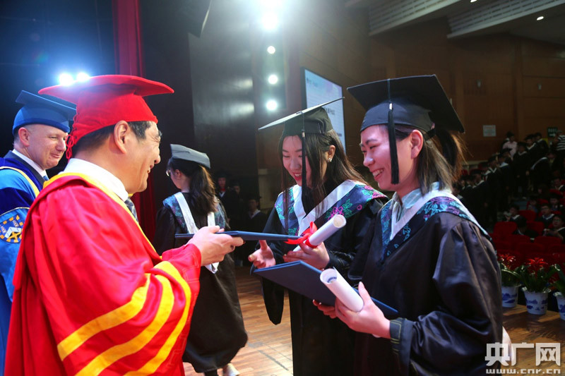 中英兩所高校校長為畢業(yè)生頒發(fā)學(xué)位證書