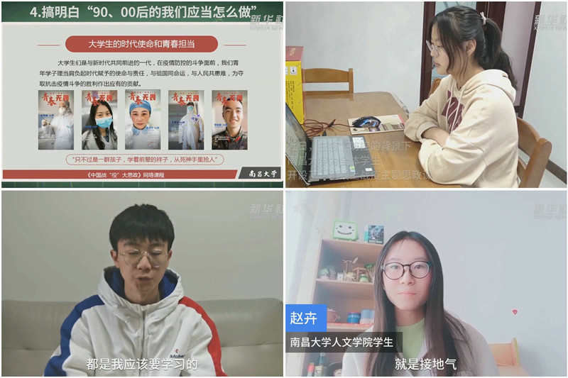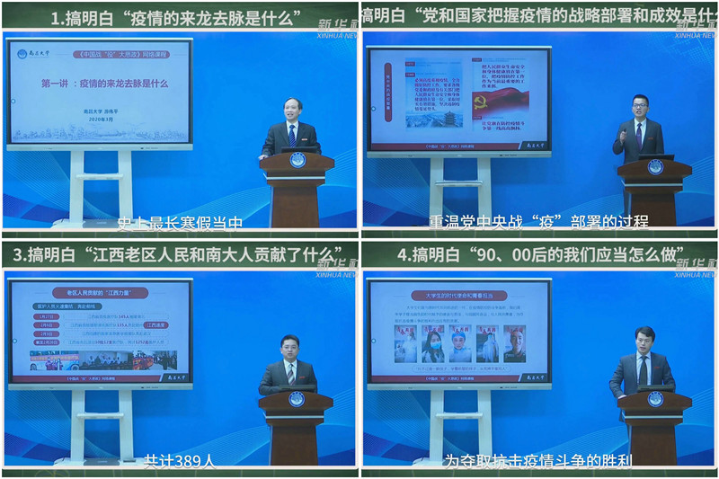 南昌大學(xué)著眼疫情防控背景下的網(wǎng)絡(luò)線上教學(xué)特點,根據(jù)教育部黨組印發(fā)的《教育系統(tǒng)關(guān)于學(xué)習(xí)宣傳貫徹落實<新時代愛國主義教育實施綱要>的工作方案》文件要求,結(jié)合“90后”“00后”青年學(xué)生實際,在本學(xué)期內(nèi)統(tǒng)一開設(shè)主題思政課,通過線上學(xué)習(xí),引導(dǎo)學(xué)生充分認(rèn)識中國特色社會主義制度優(yōu)勢,激發(fā)新時代愛國主義熱情,用當(dāng)前疫情防控中涌現(xiàn)出的大愛情懷、家國擔(dān)當(dāng)、英雄精神、優(yōu)良品質(zhì)引導(dǎo)學(xué)生不斷堅定愛國力行的使命責(zé)任,全面提升學(xué)生科學(xué)素養(yǎng)和人文情懷。