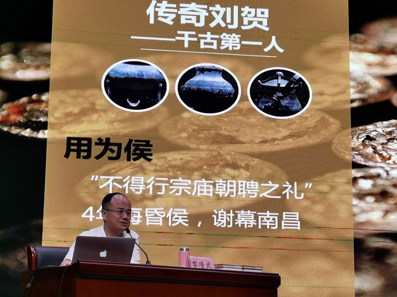 隨后,黎隆武從一個(gè)人、一座墓、一本書(shū)三個(gè)方面展開(kāi)生動(dòng)講解。黎隆武結(jié)合豐富的史學(xué)知識(shí)和偵探般犀利的視角,對(duì)西漢;韬顒①R的身世故事以及未解之謎給予了全新解讀,解密了一代悲催帝王侯劉賀跌宕起伏的榮辱生涯,揭開(kāi)了西漢中期歷史的神秘面紗。