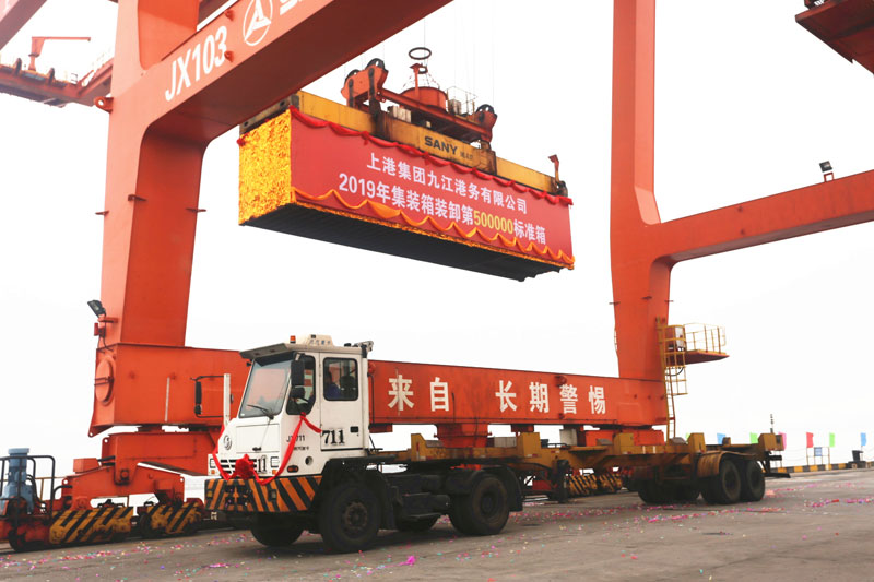 2019年12月30日,九江城西港區(qū)集裝箱碼頭吞吐量達50萬標箱。石琪攝