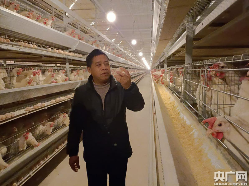 石金力在金瑞蛋雞生產(chǎn)車間(央廣網(wǎng)發(fā) 通訊員供圖)