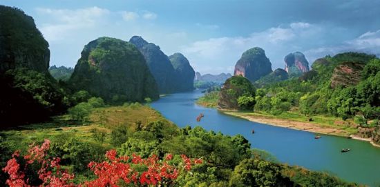 龍虎山虎踞龍盤,丹山碧水。東漢中葉,正一道創(chuàng)始人張道陵曾在此煉丹,傳說“丹成而龍虎現(xiàn),山因得名。龍虎山是道教四大名山之一,道教正一派發(fā)源地。張道陵四代孫張盛,將傳教的地區(qū)遷至龍虎山,此后張?zhí)鞄熀笠崾谰育埢⑸剑两癯幸u六十三代,歷經(jīng)一千九百多年。天師府位于鷹潭市上清古鎮(zhèn),為歷代張?zhí)鞄熤v道、居住的府邸,選址極其鄭重,其門臨瀘溪河,背依西華山,左右青山懷抱,府內(nèi)香樟成林,古木參天,仙樂縹緲,綠樹紅墻交相輝映,是道教祖庭,與山東孔府并成為“中國兩大府第”,有北孔南張之說。