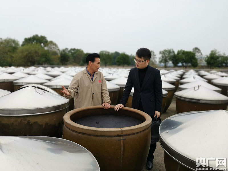 農(nóng)行廣信支行周顯煒副行長了解江西魚鷹食品股份有限公司生產(chǎn)情況(央廣網(wǎng)發(fā) 通訊員供圖)