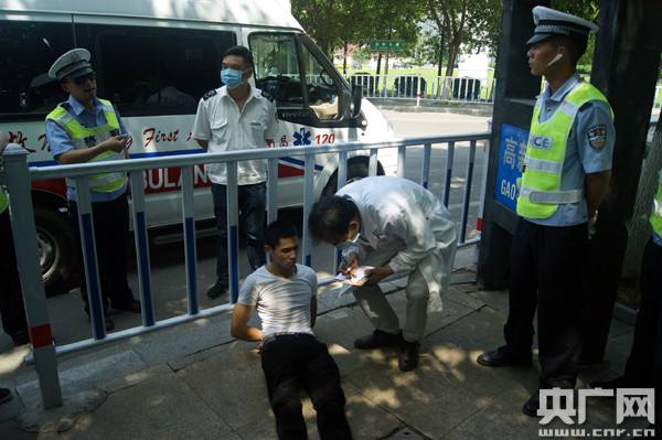 當(dāng)天下午13時許,南昌市交管局高新大隊一中隊組織警力在高新五路路口設(shè)卡查酒駕。當(dāng)一輛白色奇瑞小車從火炬大街由西往南右拐駛?cè)敫咝挛迓窌r,司機見到前方交警設(shè)卡檢查,立即停下,數(shù)秒鐘后車輛緊急調(diào)頭。此時,控制信號燈的上官文輝警官見此異常,立即通知前方設(shè)卡同事對該輛“問題車”進(jìn)行攔截檢查。由于前后都有車輛,男子在剮蹭了兩輛正常行駛車輛后,隨即棄車而逃。