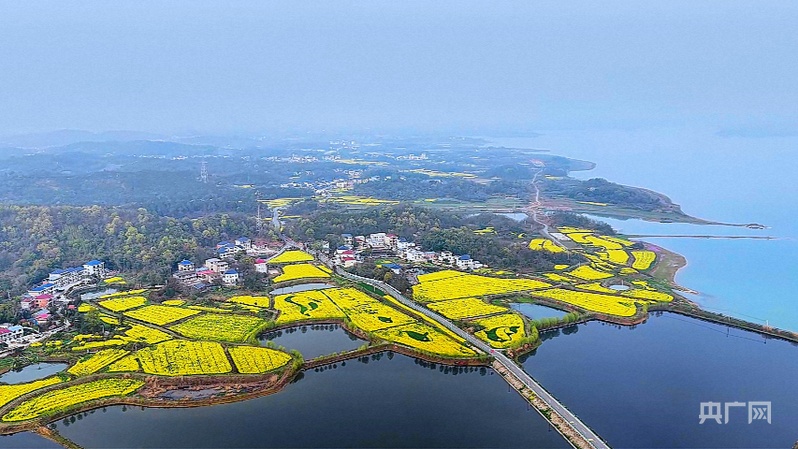 央廣網(wǎng)九江4月3日消息(記者郇康新 通訊員鄭飛華)春風(fēng)送暖,萬物復(fù)蘇。江西省湖口縣鄱陽湖江豚灣迎來了一年中最具詩意的季節(jié)。近日,隨著氣溫回升,江豚灣畔的油菜花田進入盛花期,金黃色的花海綿延鋪展,與煙波浩渺的湖水、錯落有致的村舍交相輝映,構(gòu)成一幅絕美的春日生態(tài)圖景。