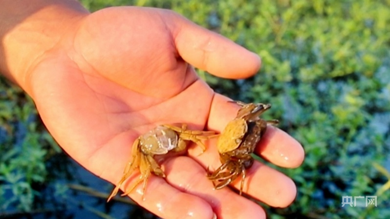 養(yǎng)殖戶展示正在生長(zhǎng)的小螃蟹(央廣網(wǎng)發(fā) 鄭飛華 攝)