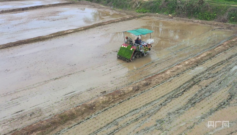 農(nóng)戶駕駛插秧機(jī)在田間來回穿梭,一派忙碌的景象(央廣網(wǎng)發(fā) 陳凡 攝)