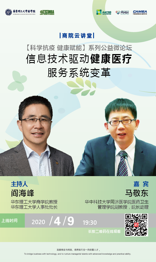 由華東理工大學(xué)商學(xué)院主辦的“商學(xué)院云講堂”【科學(xué)抗疫·健康賦能】系列公益微論壇,已于3月19日正式上線!