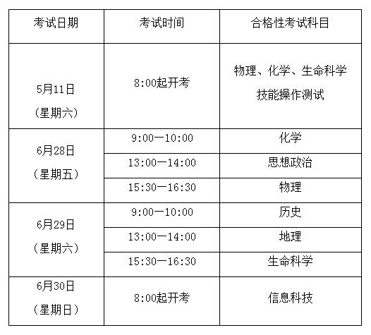 考生若有思想政治、歷史、地理、物理、化學(xué)、生命科學(xué)、信息科技合格性考試科目不合格,可選擇參加1月或6月對(duì)應(yīng)科目的合格性考試補(bǔ)考(信息科技科目補(bǔ)考僅在6月份開設(shè)),次數(shù)不限。其他科目合格性考試成績不合格的在校生由所在高中學(xué)校組織補(bǔ)考。