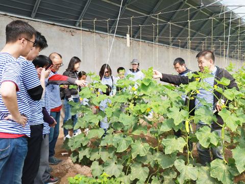 翠圃園總經(jīng)理王積越向大家講解水果黃瓜的種植知識(shí)