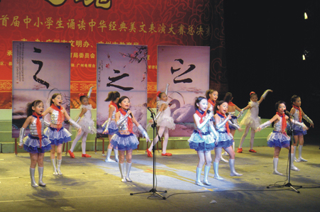 書香少年志氣高獲廣州市誦讀經(jīng)典美文表演二等獎 新華第五小學(xué)擁有一支團結(jié)務(wù)實、開拓進取、愛生敬業(yè)、追求卓越的高素質(zhì)的干部、師資隊伍。學(xué)校通過專業(yè)引領(lǐng)、師徒結(jié)對、集中學(xué)習(xí)+自我研修等方式構(gòu)建學(xué)習(xí)型校園,把教師引領(lǐng)到教書育人和專業(yè)追求上。為切實提高教師內(nèi)化新課程理念的自覺性。學(xué)校以《自主、探究、創(chuàng)新》作為學(xué)校的總研究課題,加強教育科研管理,統(tǒng)籌安排有關(guān)課題的研究工作。把教學(xué)研究專題劃分為若干個小專題,做好規(guī)劃,分工,讓每一個老師都有研究任務(wù),并把教研的致力點重在課堂教學(xué)的設(shè)計和開放性作業(yè)設(shè)計上,努力從備課形式、教學(xué)方式、評價機制等方面引導(dǎo)教師在實踐中探索反思,形成個性化的課堂教學(xué)模式,讓每一位老師都能在活動中“展示自我,成就自我,提升自我”,收到良好的效果。