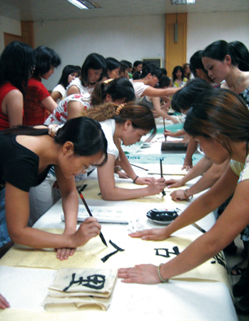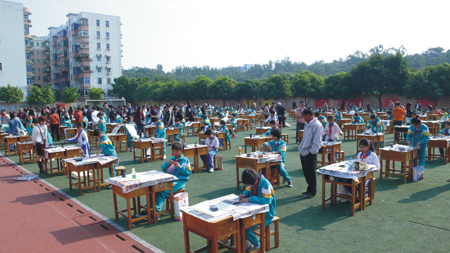 學(xué)校根據(jù)上述奮斗目標,結(jié)合學(xué)校實際,廣泛開展書法教育科研工作,并把教育科研工作與學(xué)校特色建設(shè)相結(jié)合,與新課程實施結(jié)合起來。在杜志清校長的親自帶領(lǐng)下,學(xué)校大力開發(fā)書法校本課程,書法教育“走了進教材、走進了課程、走進了教育的全過程”,學(xué)校內(nèi)掀起了書法學(xué)習(xí)的熱潮。師生的書寫水平大面積提高,培養(yǎng)了一批書法特色教師和一大批書法特長生。其中,杜志清校長的作品入選廣東省新人新作展,梁婉紅副校長的作品入選第三屆全國榜書大賽展,杜少艷,黃萬可等36名教師分別獲得全國“新世紀杯”教師“三筆字”比賽二、三等獎,教師技藝的提高為書法校本課程的建設(shè)奠定堅實的基礎(chǔ)。師生參加全國、省、市、區(qū)的各項書法比賽有128人次獲獎,國家級獎勵26人次。書法教育大大地豐富了學(xué)校的文化內(nèi)涵,提升了學(xué)校辦學(xué)的品味,F(xiàn)已成為學(xué)校文化建設(shè)中令人矚目的新增長點。 |