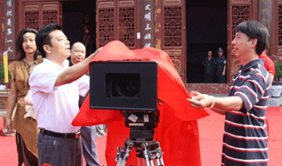 淮陽縣委書記任連軍與導(dǎo)演曹榮一起為電影《人皇伏羲》開機(jī)揭幕
