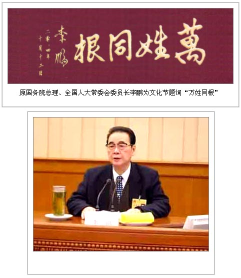 原國(guó)務(wù)院總理、全國(guó)人大常委會(huì)委員長(zhǎng)李鵬為文化節(jié)題詞“萬(wàn)姓同根”