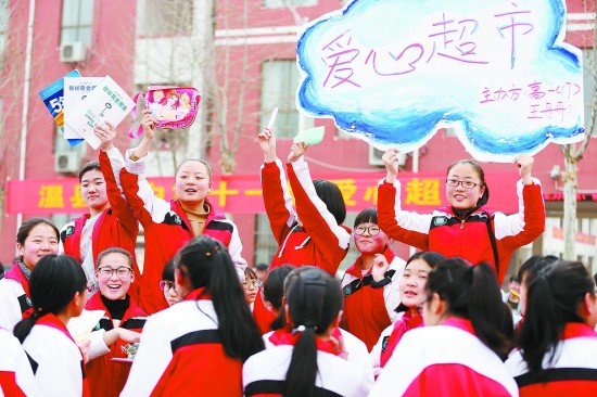 3月18日,河南溫縣一中師生在校園義賣。當(dāng)日,河南焦作市溫縣一中舉行“愛心超市”校園義賣活動,學(xué)生們拍賣自己閑置的學(xué)習(xí)用品、電子產(chǎn)品、衣物等,所得錢款捐助給家庭困難的在校生。