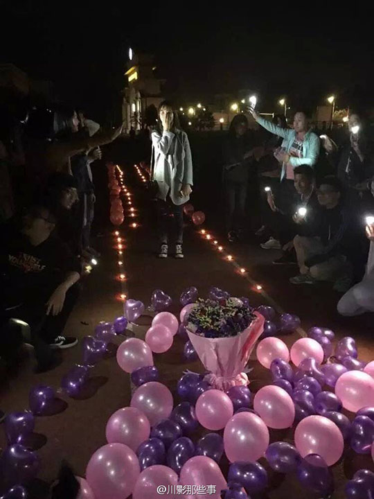 4月6日晚,四川電影電視學(xué)院操場上川影2015級編導(dǎo)六班的同學(xué)們給美女輔導(dǎo)員過生日,全班男生單膝跪地唱《小幸運》。同學(xué)們給美女輔導(dǎo)員過生日。同學(xué)們給美女輔導(dǎo)員過生日。同學(xué)們給美女輔導(dǎo)員過生日。