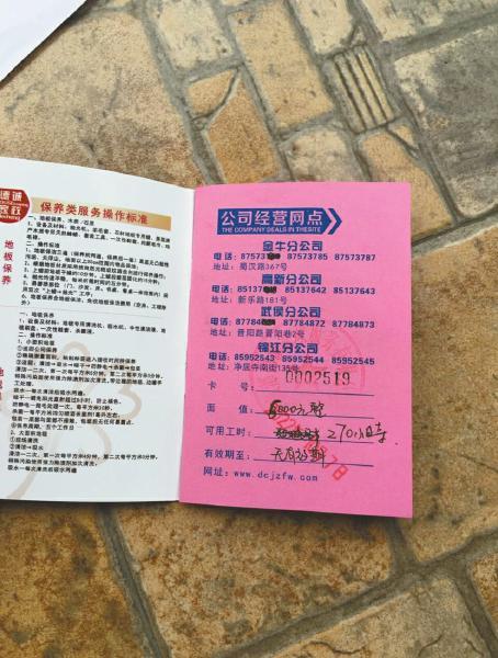 然而,4月30日苦等一上午,馮錦也沒有等到保潔人員來家里。更讓馮錦納悶的是,印在會員卡上的公司的12個(gè)服務(wù)電話,居然沒有一個(gè)能撥通。馮錦有些坐不住了,她往家政公司走去……
