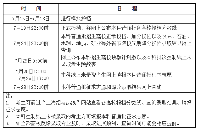 本科普通批錄取日程如下: