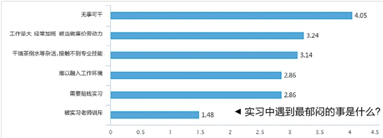 在各種各樣的實(shí)習(xí)狀態(tài)中,“無事可干”、“工作量大,經(jīng)常加班,被當(dāng)作廉價(jià)勞動(dòng)力”和“干端茶倒水等雜活,接觸不到專業(yè)技能”榮登吐槽榜前三位。