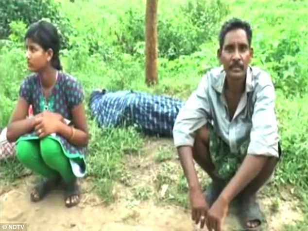 圖為志愿者叫來幫忙的車運(yùn)走了Dana Majhi的妻子。